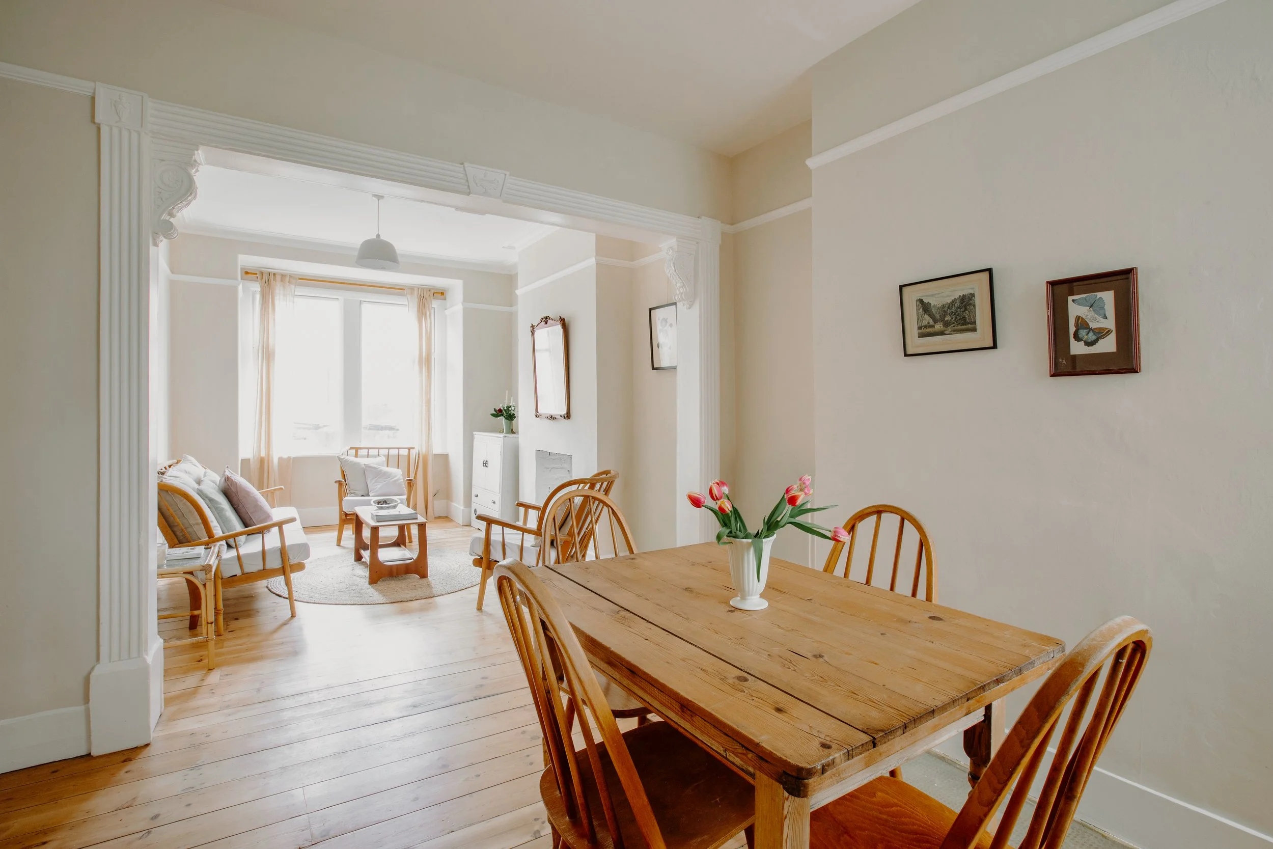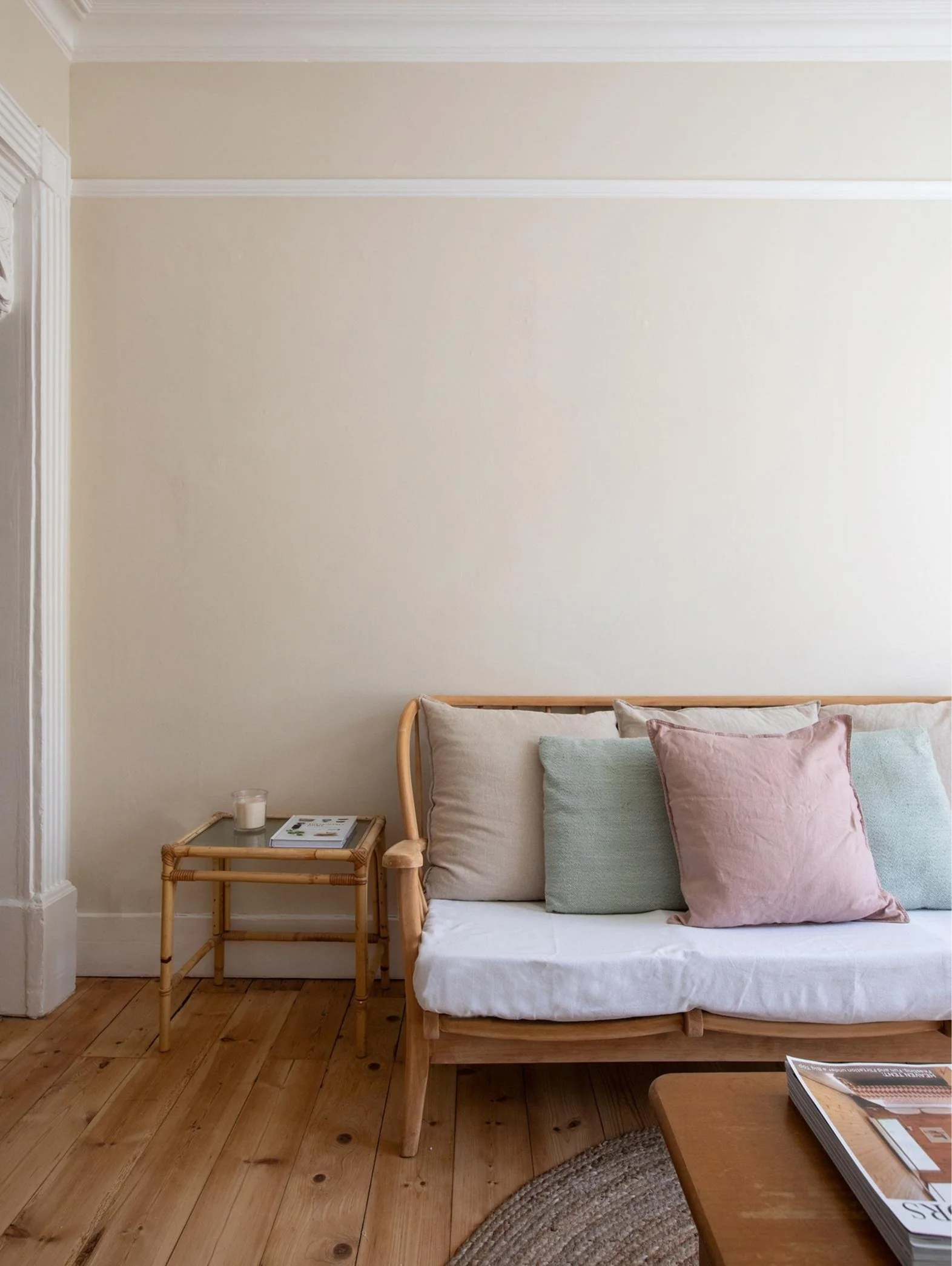 This bow-fronted Regency house by the sea required a full refresh, including decoration, a new bathroom, and carefully considered furnishing. The small kitchen was completely reimagined and handbuilt to suit the space, while a bathroom and bedroom were swapped to improve the layout and functionality.