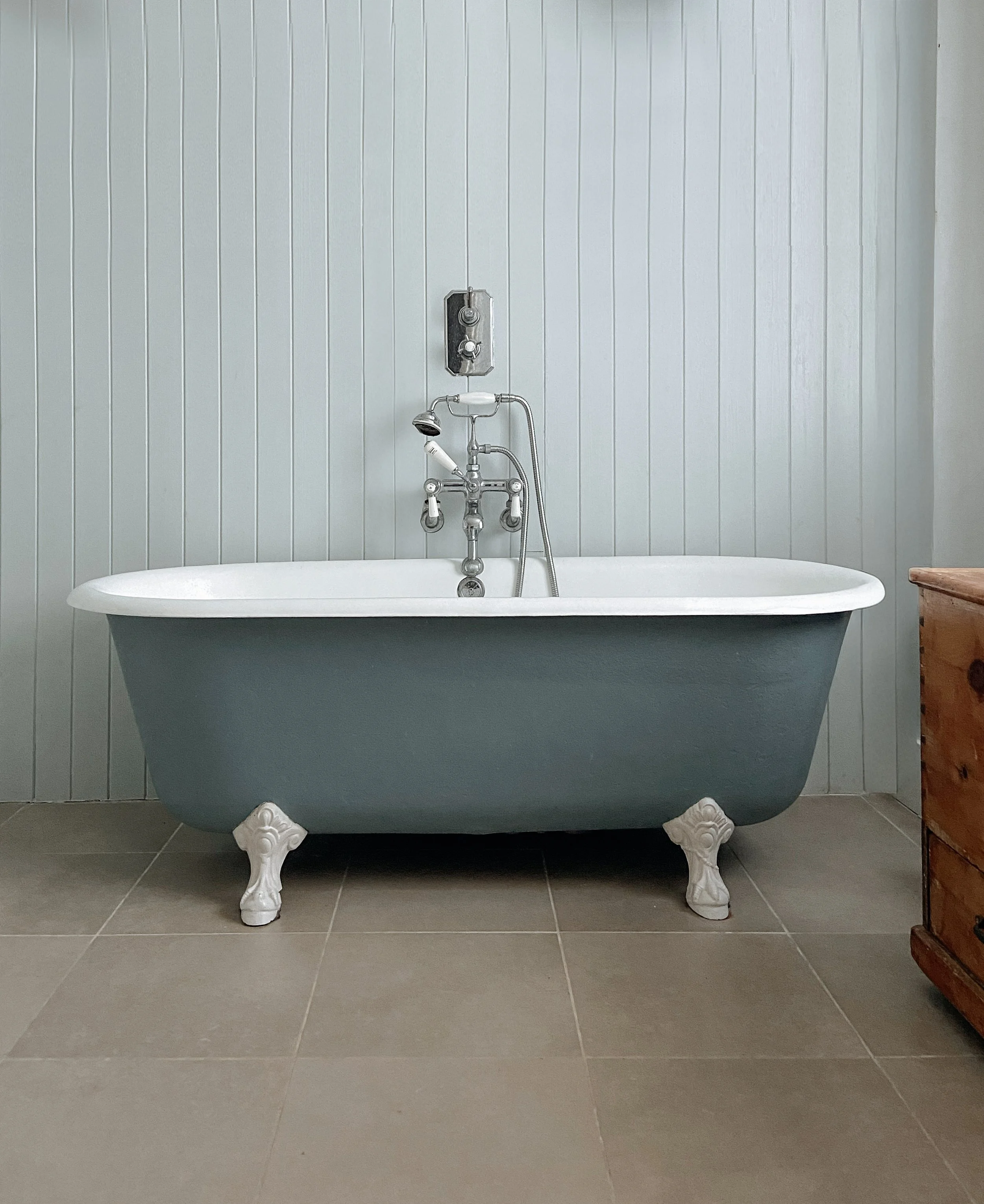 We sourced a range of reclaimed elements to enhance the building’s character, from the huge double-ended bath salvaged from a convent in the south of France, to taps, handles, and the stone floor in the kitchen. Every piece was chosen to complement the period of the house, creating a harmonious, layered interior that feels both authentic and welcoming. The result is a home that balances historical charm with thoughtful, contemporary living.