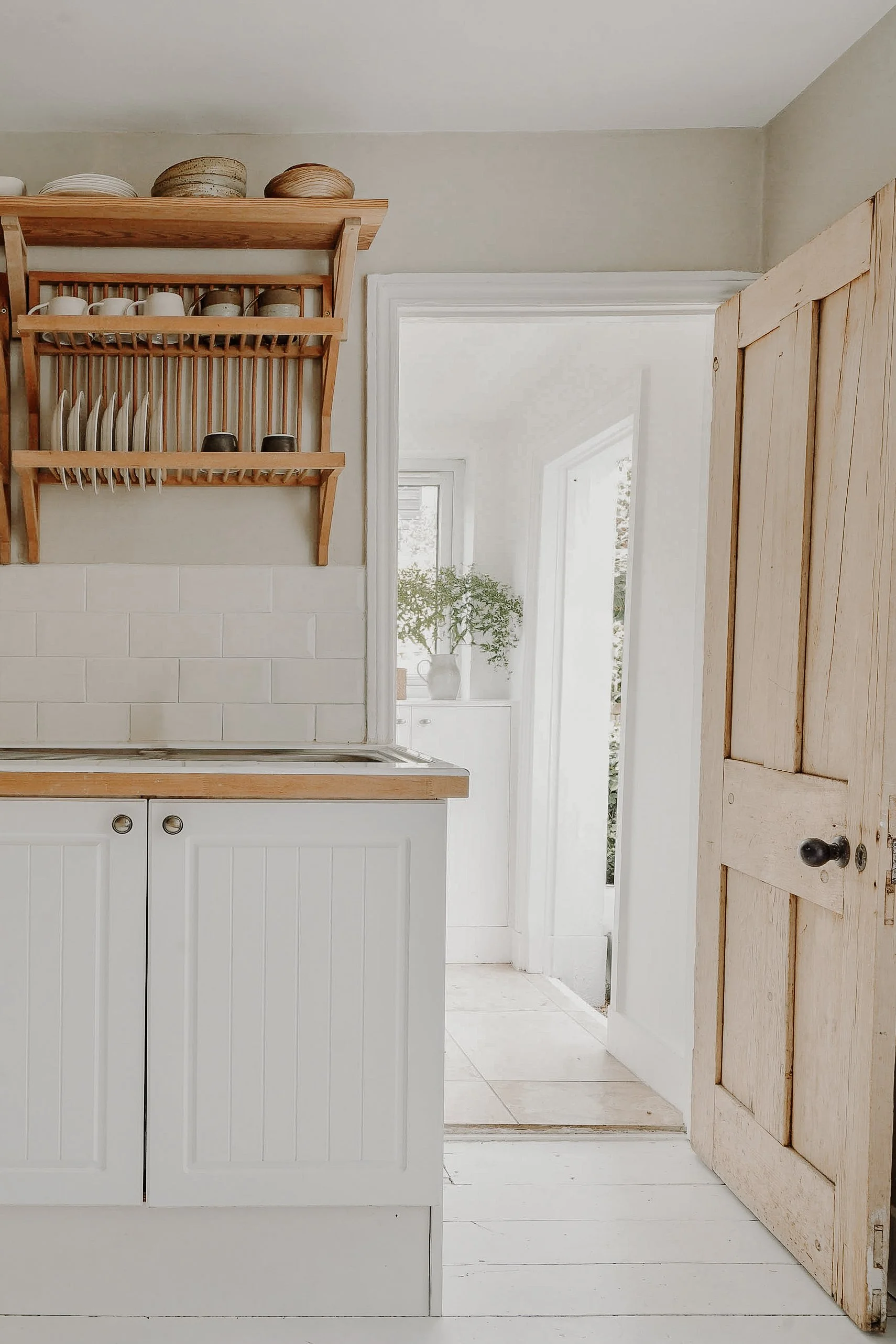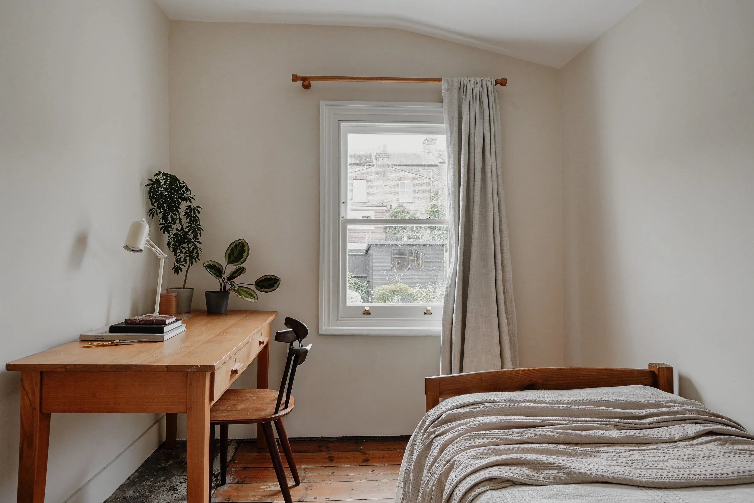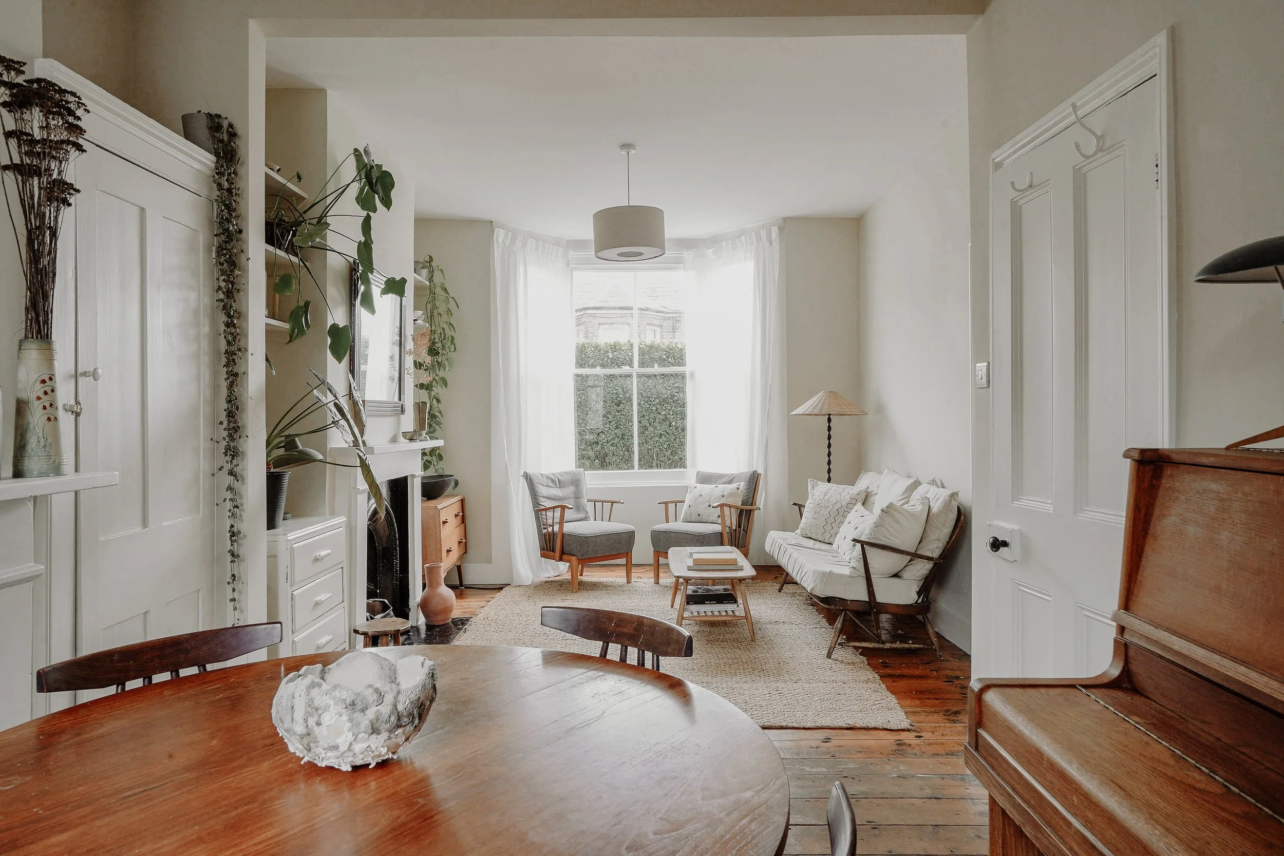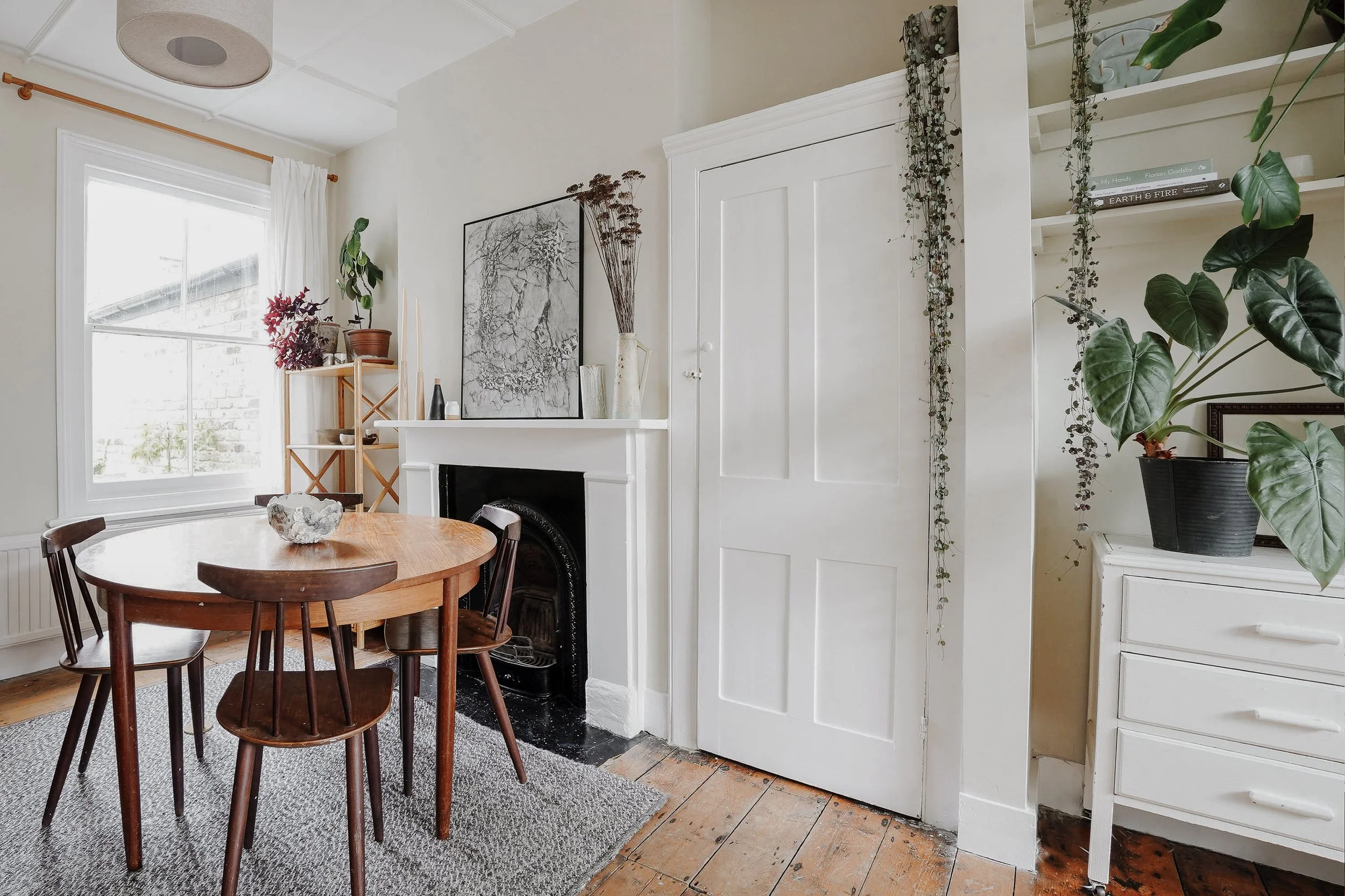 This charming Victorian terrace has a distinctly cottage-like feel, with an abundance of original features that set the tone for the interiors. The owners were keen to honour the house’s history, keeping its period details intact and furnishing it with a thoughtful mix of antique and reclaimed pieces. The neutral palette and layered textures create a calm, homely atmosphere, while the careful mix of furniture and finishes gives the home a lived-in warmth that feels both authentic and enduring.